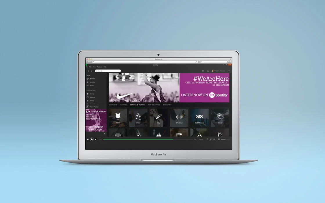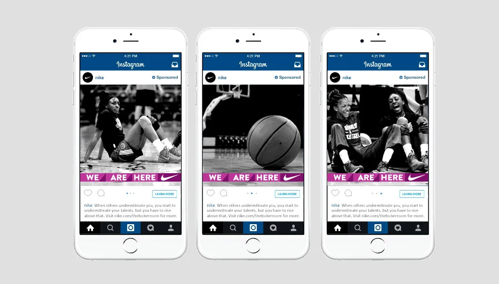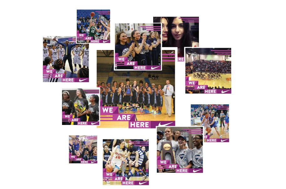 Execution: Our team focused on the underrepresentation of female athletes and created the tagline "We Are Here" to show that these girls are not to be ignored. We gave them a voice and tools they could use to express how proud they were to be a woman athlete. The platforms pushed were Instagram, Facebook Messenger, Snapchat, and Spotify. We even created a custom website for the women which in turn generated Nike new emails.